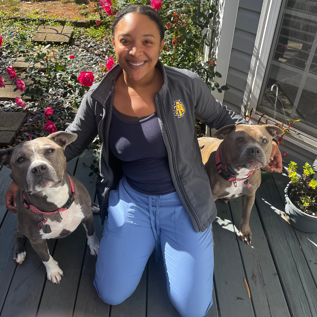 "Ivy is scared of most people and shuts down in loud environments. D’yana handles her with grace and even noticed an eye issue I missed. Her vet tech background is such a bonus!"